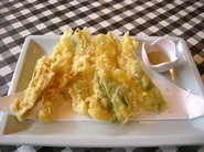 抹茶塩でいただくあなごの天ぷらはサックサクです