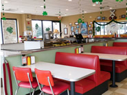 「2 Toots Train Whistle Grill」は、注文したお料理をレールに乗ったおもちゃの電車が目の前まで運んできてくれる、ユニークなコンセプトのお店です。このお店はイリノイ州内に3ケ所あるのですが、今回訪問したBartlett店はメトラ駅の直ぐそばにあるので、運が良ければ本物の電車を眺めながらの食事も出来るという、電車好きの子供にはたまらない夢のようなロケーションです。店内はダイニングが一望出来る広々とした造りで明るく、昔のアメリカン・ダイナーを彷彿させるようなレトロな雰囲気で落ち着きます。お料理はハンバーガーやサンドイッチ、マカロニ&チーズ、ナゲット、そしてデザートにはハンドメイドのカップケーキやシェイクといった子供受け抜群のアメリカン・メニューが中心ですが、食材や調理法にはこだわっており、大人も大満足な味わいとボリュームが魅力です。