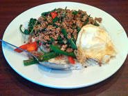 いかにもタイ!といったエキゾチックなハーモニーが楽しめるTom Kha Kai Soup。 Pad Woon Sen Noodlesは春雨が見えないくらい沢山の野菜が入っています。 かなりスパイシーなBasil Ground Pork Over Riceは、食欲をそそります。