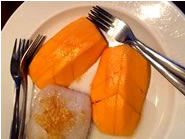 ココナッツミルクで蒸したもち米をマンゴーと一緒に食べるMango with sticky rice。 小さいけれど清潔感あふれる店内。