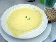 今回は壁に小さく貼ってある『Today’ Menu』の中からスープにCold Curried Corn($2.50)、サンドイッチにはGrilled Tomato, Pesto, and Mazzorela on Focaccia、それからほうれん草とリコッタチーズのキッシュもオーダーしました。