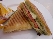 次に出てきたキッシュはとってもフワフワしていて、リコッタチーズの味といい全体的な塩加減といい、食べなきゃソン!な逸品でした。一緒に出てきたサンドイッチは、Focacciaの表面がカリカリに焼いてありマッツオレラの溶け具合が完璧。こちらもキッシュに負けず劣らず本当に◎。ペスト・ソースがいっぱい入っているので、フォカシアの中の部分はシットリとしているのが印象的でした。