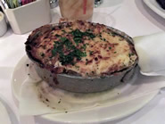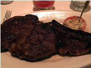 メインのステーキには8オンスのFilet Mignon とBone-In Ribeye を頼んだのですが、サーバーさんが「絶対食べてみて欲しい!」というので、彼のお勧めのデミグラスソースも一緒につけてもらいました。このデミグラスソースは、なんと20時間もかけて煮込んで作られているそうで、口に入れると凝縮した野菜のウマミがしっかりと伝わってきます。濃厚で深みのある味わいが、柔らかくてあっさりしたフィレミニヨンと良く合っていて、また一味違うステーキの美味しさに感激。ただ、このソースは常時あるわけではないそうなので、もしお勧めされた場合は是非頼んでみてください。焼き加減がばっちりのミディアムレアのボーン・イン・リブアイは、表面の焦げ部分がちょっと気になりましたが、ジュワーっと広がる肉汁とともに肉の旨みをとことん堪能できる仕上がり。付け合わせにはBrussel Sprouts(芽キャベツ)と、サーバーさんがイチオシするTruffled Scalloped Potatoes を頼みました。適度に歯ごたえのある芽キャベツはベーコンと一緒に炒めてあり、香ばしい香りとべーコンの塩気がクセになります。薄切りのジャガイモをグラタン仕立てにしたトラッフルド・スキャロップポテトは、ホックリとしたジャガイモの食感が良く、トリュフとチーズの芳醇な香りが贅沢な気分にさせてくれます。
