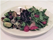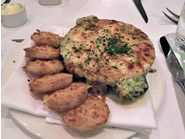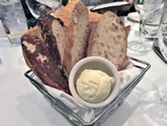 席に着くと早速、パルメザンチーズ・クリスプとナッツとレーズンのクリスプ、プレッチェルバンそれにアーティサン・ブレッドのスライスが盛られたバスケットが運ばれてきました。中でもパルメザンチーズの豊かな香りが贅沢なパリパリのチーズクリスプと、ほんのりと甘いナッツとレーズンのクリスプが取材班の間で好評でした。アペタイザーにはサーバーさんがお勧めするLobsterscargot をオーダーしました。これはエスカルゴ・ディッシュにのせたロブスターに、チーズをたっぷりとかけてオーブンでこんがり焼いたもので、小さいクロスティーニ(イタリア風のミニトースト)の上にのせて食べます。バターがふんだんに使われているのでかなりこってりとしていますが、ロブスターのプリプリした食感と風味を存分に楽しめます。ベビーアルグラを使ったCharred Octopus Salad は、マイルドな酸味と甘みが特徴的なホワイトバルサミコ酢のドレッシングで和えています。グレープフルーツの爽やかなアクセントが効いていて、プチトマトや、ちょっとスパイシーで香ばしいグリルしたタコとの味の一体感が絶妙です。 お料理はサーバーさんが必ず二人組でテーブルサイドに立って、料理を人数分に取り分けてくれるなど、丁寧なサービスがとても好印象でした。