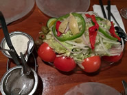 アペタイザーメニューに大人気のMediterranean Breadはシェアするのにピッタリ サラダには二種類のドレッシングがついてきます ドレッシングはどちらも美味しいと評判ですが、両方合わせるとさらにグルメに仕上がります