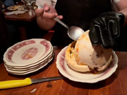 同店のシグネチャーメニューのPizza Pot Pieは、焼きたて熱々の状態で運ばれてきて、目の前でお皿にサーブしてもらえるのが楽しいです。大きさはHalf-PounderとOne-Pounderの2種類があり、ピザ生地はWhiteとWheatの2種類、具材はMeatとVegetarianの2種類があります。Meatでも丸ごとのマッシュルームがゴロゴロ入っていて、意外にあっさりしているのでペロリと平らげられてしまいます。