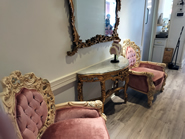 ローズピンクとゴールドを基調にしたロマンチックでエレガントな雰囲気の店内