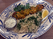Chicken Keftaはスパイスとハーブを練り込んだひき肉を串焼きにした中東風のケバブ