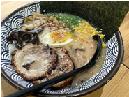 ファイブ・スパイス豆腐サラダにはレタスともやし、ほうれん草、きゅうり、そして厚揚げが入っています。軽い酸味の効いたドレッシングで和えていますが、味にとりわけインパクトがないのでコクのある醤油や辛味のあるラー油などを加えたいところでした。クラッシックプレートから選んだ四川風グリーンビーンズは、細長く刻んだ豚肉と玉ねぎをいんげんと一緒に炒めたもの。お皿に溢れんばかりにのった大盛りのグリーンビーンズは程よいシャキシャキ感が残っていて、ニンニクと薬味の香ばしさが食欲をそそります。食べても食べても飽きの来ない美味しさなので、今回の取材班のイチオシになりました。ただ一緒についてくる白米はパサパサしていたので、持ち帰って炊き立てのご飯と食べるのが良いかもしれません。シグネチャーメニューから選んだブラックペッパー・ガーリックビーフは、ハニー・ガーリックと黒コショウでマリネした牛肉を揚げたお料理。はちみつの甘さに胡椒の辛味が合っていて味にまとまりはあるのですが、衣に使っている粉が多いためか、お肉がフニャっとした何とも言えない微妙な噛み心地で、残念ながら食感の悪さが気になりました。今回一番楽しみにしていた締めのラーメン。4種類あるうちからとんこつを選びました。特製のスープは旨味がたっぷりと感じられ、ガーリックの後引く風味も合わさって、取材班全員の心をとらえました。トッピングも日本のラーメン屋で食べられるようなチャーシューとゆで卵、メンマ、コーン、ネギ、焼き海苔とゴマという王道アイテムで、さらっと回しかけたブラックガーリックオイルのアクセントも◎。とにかく期待以上の仕上がりで大満足でした。