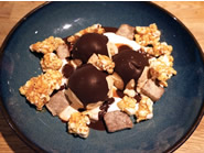 最後にデザートメニューからCaramel Corn & Malt Ballsをオーダーしました。これはバニラアイスクリームにパリッと固めたチョコレートとカリッと香ばしいキャラメルポップコーン、それにマシュマロをのせたもので、口どけのよいアイスクリームにキャラメルとチョコレートのクランチーさが引き立っています。