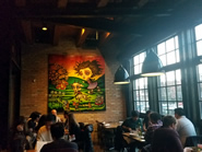 アメリカで一番予約が取りにくいレストランとも言われている「Girl & the Goat」は、ケーブルネットワーク”Bravo”の人気リアリティー番組「Top Chef」で、女性シェフとして初めて優勝したStephanie Izard がエグジェクティブシェフを務めるレストランです。イザード氏はその後もJames Beard Foundation Awardでベストシェフに輝いたり、アイアンシェフに出演するなどして注目を集めており、お店はオープンから八年たった現在も、一流シェフの料理を食べにやってくるお客さんが絶えない人気ぶりです。今回の取材もなんと3ヶ月前の予約でやっと訪問することが出来たのですが、当日も開店の4時半に入店したにも関わらず、店内にはすでに予約のお客さんで6割ほどの席が埋まっていました。お洒落な家でくつろぐ空間をイメージしたという店内は、程よい明るさの照明と落ち着いた色合いが使われていて、洗練されたインテリアの中にもホッとするような温かみと居心地の良さを感じます。