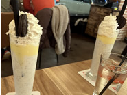 ドリンクには、隣ののテーブルのお客さんがオーダーしていて気になっていたオレオ・クリームブリュレー・シェイクを頼みました。オレオクッキーやクリームブリュレといった名前からして、ヘビーな甘さを想像していたのですが、意外にも甘さは控えめで、口当たりもサラッとしているので飲みやすかったです。日本のスイーツのような味わいがあり、満足度120%でした。