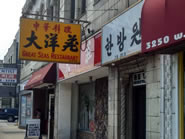市内のAlbany Parkエリアにある「Great Sea Chinese Restaurant」は、中国料理と韓国料理を織り交ぜたアジアン・フュージョンのお店です。間口が狭い上に道路から店内が見えないようになっているので、一見すると営業してるかどうかわかりにくいのですが、毎日ランチからディナーまでオープンしています。大きな岩で出来た外壁や木の扉が目印のお店は、昭和の香り漂うスナック喫茶を彷彿させる外装で、雑多な印象のLaurence Avenue周辺の雰囲気に見事に溶け込んでいます。店内には窓を覆うような観葉植物や、これぞ中国!といった家具が置かれているので、一瞬、ここは本当にアメリカと疑ってしまうような、異国情緒に溢れています。