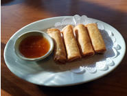 今回はアペタイザーメニューからPon Pia Toddという揚げ春巻きと、ランチスペシャルのKhao Rad Gang、それから単品でKao Mun Gaiをオーダーしました。ランチスペシャルのKhao Rad Gangは、好きなCurries(カレー)とWok-Tossedのメニューから1〜3品(注:品数やお料理によって値段が変わる)を選べて、サイドにはジャスミンライスがついてくるお得なメニューです。CurriesとWok-Tossedのメニューは常時ショーケースに並んでいるので、希望すれば試食もさせてくれます。今回はKhao Rad GangというペナンカレーとGaengkiwe WhanGaiというグリーンカレーを選び、Wok-TossedにプレミアムメニューのPad Horapa(バジルフライドライス)、そしてFried Eggを追加でのせてもらいました。