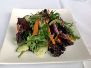 ほうれん草の入りのトマト・スープは酸味の効いたさっぱ系。 パリッとしたレタスの歯ごたえがいいシーザー・サラダ。 色鮮やで食感のいいミックス・グリーン。