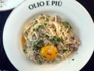 洋梨のコンフィ、サワークランベリー、ヘーゼルナッツ、ペコリーノロマーノチーズを合わせたInsalata Di Pere Guancialeというベーコンとパルメザンチーズ、卵黄を絡めたChitarra Alla Carbonaraは濃厚なソースが美味