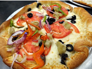 お好きな具材で作るカスタマイズピザもお勧め。こちらはオリーブオイルソースにモッツアレラチーズとトマトとレッドオニオン、ブラックオリーブ、アーティチョークをのせたもの。 |