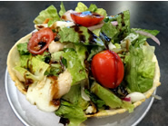 | ロメインレタスと柔らかいチキン、レッドオニオン、ペペローニなどがのったClassic