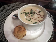 店員さんお勧めの “In the Loop”は、秋らしさを感じるシナモンウォッカをベースにしたカクテル ベーコンの旨みとクラムの潮の風味が見事に調和たNew England Clam Chowder 甘味、苦み、酸味などの素材の様々な味のハーモニーを楽しめるBurrata Saladは同店の人気メニュー