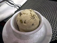 食後のデザートには、ピスタチオアイスクリームをオーダー。濃厚でクリーミーな口当たりは舌の上で心地よく溶け、一口目から広がるナッツの香ばしさが印象的です。後味にはほんのりとした塩気が残り、甘みとの対比が絶妙な奥行きを生み出します。シンプルながらも上質さを感じさせる味わいで、コースのフィナーレにふさわしい存在でした。