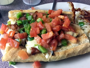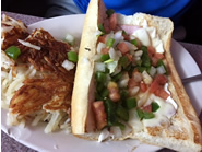 このお店のシグネチャーメニューは、”ロレッタ”と呼ばれるソフトフランスパンを使ったオープンサンドイッチで、ハムやベーコン、それにディザスターと呼ばれるアルメニア風ソーセージを、刻んだトマトやピーマン、玉ねぎなどの野菜と一緒にのせています。オーブンでトーストした香ばしいパンにとろけたモッツァレラチーズ、マヨネーズ、それにスペシャルスパイス(パプリカやガーリックソルトなどがはいった調味料)でしっかりと味付けしてあり、食べ応えと満足感があるのが特徴。ベーシックなポーリッシュハムを挟んだハムロレッタはシンプルなコンビネーションだけに、ピーマンの軽い苦みとスパイスの味わいが引き立ち、食が進みます。ベーコンがのったベーコンロレッタも、香ばしく焼いた特製ベーコンのうまみが野菜やチーズによく絡んでいてお勧めの人気メニュー。サイドディッシュにはハッシュドブラウンやたっぷりのチーズがとろけたチージーハッシュ・ブラウンなどがあり、多くのお客さんがサンドイッチと一緒に頼んでいました。他にも具がたっぷり入ったオムレツやパンケーキ、そしてフレンチトーストにも定評があります。