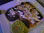 メインに頼んだBlackened Mahi Mahi Tacoは、3つのタコスにライスとビーンズがセットになったボリューミーな一品。フィッシュタコスはお店によって当たり外れがあるのですが、同店のものはスパイスやマヨネーズなどのバランスが良く、今まで食べた中でも上位に入る美味しさでしたのでリピート確定です。ほんのりピスタチオ色のオリジナル・ライスも特徴的ですし、パプリカなどの野菜を使ったタコスも彩りも豊かで食欲をそそります。追加注文したEnchiladas SuizasはソースにMoleを、トルティアの中に包む具はBarbacoa(メキシカンバーベーキュー)を選びました。カカオを使ったメキシコの伝統的なモレソースは甘めで、ほんのりと漂うチョコレートの様なアロマがたまりません。中身のバルバコアもぎっしりと詰まっていて、肉好きにはたまらないお料理でした。