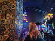 シカゴ市内で手頃な値段で美味しいメキシコ料理の食べられる「Senoritas Cantina」をご紹介します。同店はラテンアメリカ系の移民が多く集ることで知られているPilsen地区に第一号店をオープン。すぐに人気を呼び、2022年1月にはSouth Loopにもお店を出したので、今回はそちらを訪れました。お店はシックな色合いの建物が並ぶ中で一際目立つ水色のポップな看板と窓に描かれた可愛らしいお店のキャラクターが目印。中に入ると艶やかな紫色の壁紙を中心にカラフルなライトやびっしりと貼られた派手な装飾タイルが目に飛び込んできて、メキシコらしい賑やかでエキゾチックな空間が広がっています。店員さんはフレンドリーですし、アットホームな雰囲気なので居心地よく食事が出来ました。