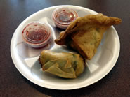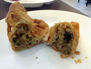 揚げたてのSamosaと、ちょっとスパイシーなBeef Roll。 中を割ると湯気とともにジャガイモの甘さとスパイスの香りが漂います。 前菜についているヨーグルトソースは冷たいサラダにかけても◎。