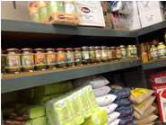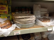 奥の食料品店には中東系やアフリカ系のスパイスやパン、米などの食材が棚にずらり。