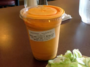 ランチに訪れたこの日は、ポテトのたっぷり詰まった大ぶりのSamosaと、ちょっとスパイシーなひき肉入りのBeef Rollを前菜に頼みました。どちらも熱々の揚げたてで、割ると湯気と共にジャガイモの甘い香りと爽やかなスパイスの香りが立ち昇ります。お好みで、ほんのり甘いラズベリー・ソースや、パブリカやコリアンダーなどのスパイスが入ったピリ辛風のヨーグルト・ソースをつけるとより美味しくいただけるのですが、このソース類は、冷たいサラダにもぴったりでした。ドリンクに頼んだ甘さ控えめのMango Lassiは、作りたてのフレッシュさがあり、どんなスパイスを使った料理にも合いそうです。