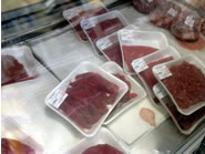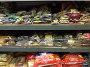 いろんな文字で書かれた輸入食材のほか、肉や野菜などの生鮮食品も少しおいています。