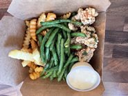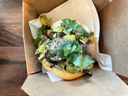 フードメニューも豊富なので、店員さんにおすすめを伺いました。台湾のストリートフードでおなじみのポップコーンチキンは、同店の人気メニューらしく、フレーバーソースと楽しむフレンチフライも見逃せないとのことなので、どちらも楽しめるFried Combo Aを頼みました。ストリートフードらしい持ち帰り用の紙容器に、ポップコーンチキンとグリーンビーンズ、ポテトがぎっしりと盛られています。ポップコーンチキンはサクサクで、タイバジルと五香粉の香りがしっかりと効いたエキゾチックな味わいです。日本の唐揚げとは異なりますが、スパイスの香りが食欲をそそり、食べる手が止まりません。シトラスクリームソースは、ほんのり甘みのある柚子マヨネーズのようなもので、フライドポテトだけでなくグリーンビーンズにもよく合います。次に、台湾料理では欠かせないバオ料理の「House Pork Belly Bao-wic」をオーダーしたところ、バオは通常、蒸して作られますが、同店のものはカリッと軽く揚げてあり、ポークと一緒に高菜とコリアンダーがたっぷり挟まれていました。様々な食感と味が融合したユニークさと、抜群の味のバランスに脱帽です。台湾の牛肉麺「Spicy Beef Noodle Soup」は、牛骨をベースにしたダシに、醤油や豆板醤を加えたスープがメインです。スープは辛味がなくさっぱりとしていますが、滋味深く、飲むほどに元気が出ます。中太の丸麺は喉越しが良く、上には分厚い牛のすね肉が4枚も入っているので、ボリュームもバッチリ。