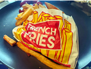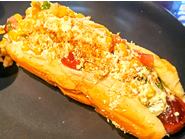 ホットドッグの上にグリーンチリやピコ・デ・ガヨ、コーン、コティハチーズをトッピングした「IT'S NOT A CORN DAWG」 同店の隠れた人気商品のチキンサンドイッチ「ROOSTER」は取材班もお気に入りのアイテム! 袋サイズのフレンチフライでも結構な量です。追加でお好みの特製ソースを選ぶことも出来ます