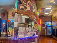 取材班が訪れたSouth Loop店は窓一面にネオンサイン、壁一面には大きなメニューやカラフルなイラスト、それにグラフィティーアートなどが描かれていて、賑やかで楽しい雰囲気。通常であればそんなド派手でアメリカっぽい店内で、ホットドッグをダイナミックにほおばりたいところなのですが、コロナ禍の現在はシートが片付けられているのでテイクアウトのみの利用でした。