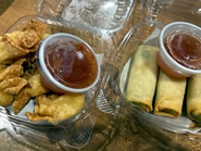 今回はアペタイザーにオクトパスサラダと春巻き、クラブラグーンを頼みました。シカゴ界隈のレストランでもなかなか目にすることのないタコの燻製を使ったオクトパスサラダは、懐かしい味わいでおつまみにはうってつけの一品。春巻きは特筆すべき点はありませんでしたが、クラブラグーンはカリカリの揚げワンタンの中にたっぷりと詰まったクリームチーズとの対照的な食感が良いと、取材班に好評でした。