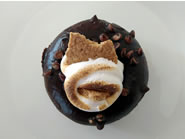 チョコレートグレイズドでコーティングしたドーナッツに、チョコチップと表面を軽く炙ったマシュマロ、そしてグラハムクラッカーをのせています。マシュマロの濃厚な甘さと香ばしさがアクセント。