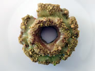 淡いグリーンが綺麗なピスタチオ・グレイズドでコーティングしたオールドファッションの上に、細かく粒状に砕いたピスタチオがタップリついています。