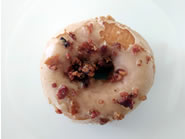 甘いグレイズドでカバーしたドーナッツにメープルベーコンビッツを散らしています。ドーナッツにベーコン?と思いますが、ベーコンの甘じょっぱさが意外に合っていて、クセになる味わいです。