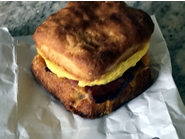 シグネチャーのサクサクのビスケットで卵を挟んだBiscuit Sandwichはほっぺたが落ちそう