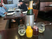 ドリンクにはブランチの定番ともいえるミモザをオーダー。スパークリングワイン1本とオレンジジュース、チチャモラーダジュースがセットになった「Mimosa For the Table」は、それぞれ自分好みの割合で作る2種類のミモザをトライできます。チチャモラーダジュースは紫トウモロコシを煮込んで作った栄養価の高いジュースで、ペルーでは欠かせない国民的スーパードリンク。味はぶどうジュースに似ていて飲みやすいので、サングリアのようなフルーティーなお酒が好きな方にはお勧めです。