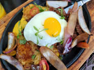 ブランチメニューのSTEAK & EGGはペルーの国民食。ソースが感動的な美味しさです 魚やイカ、タコ、エビ、ユカと呼ばれる南米の芋に衣をつけて揚げたJALEA TANTA