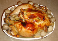 鳥肉を焼く時は、必ず温度計が180度Fを超えるまで調理してください。また、バクテリアなどが発生しやすいため、腹の空洞にはパンなどの詰め物は避けましょう。