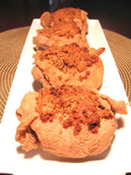 とり肉はどこの部位がお好きですか?よくレストランで見かけるのは胸肉で、見た目もいいし、大きいので食べがいがあるのですが、焼き過ぎるとパサパサになりますし、味も淡白です。ローストにおすすめなのが、もも肉(Thigh)の部分。脂肪分が胸肉に比べると多いですが、しっとりとした身の味は濃いです。また、多少焼きすぎても、パサパサになる事はありません。調理する時、皮をつけたままにしておくと、旨味を閉じ込めて、身の水分蒸発を防いでくれます。カロリーが気になるのであれば、食べる直前に皮をはずすのをお勧めします。でも、パリパリの皮が一番美味しいのよ!