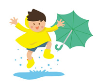 子供達は外に出て 暖かい雨を感じます