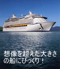 この船、とにかくでかい!ホテルが海の上を走っているのを想像していただけば間違いはない。12階建てで4つのダイニングルーム、11個所のバー。映画館、エステ付きジム、ランニングコース、カジノ、プール、コンピュータルーム、図書室、2つの劇場、ショッピングモールなどなど。客室数にいたっては1150室もある。方向音痴には気が遠くなるような広さなのだ。初日にはクルーズ初心者のためのツアーが用意されている。