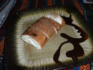 たま「では早速行ってきま〜す。(山盛りの取り皿を抱えて戻ってくる)確かに目移りしてしまって。。。しょうがないんで全部取ってきちゃいましたよ(笑)。あ、このジナタンって温かいプランテーン(バナナのお化けみたいな植物)とヤム&ココナツミルクが使われている。とっても優しい味ですよ。他にはキャッサバ(タピオカの原料)のケーキでしょ、紫芋のケーキと、白いケーキにココナツがかかったの、それからそれから。。。」