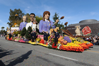 カウントダウンを楽しんだ後は、全米カレッジフットボール王座決定戦のローズ・ボールで新年を迎えます! とはいっても、今年は例年とはちょっと違っていて、日曜日は教会の礼拝を守るために試合をしないという取り決めにより、試合は、1月2日におこなわれます。試合の前には、8時(シカゴ時間では、10時)からカリフォルニア州のパサデナでパレードが、華やかなスタートをきります。美しい生花で飾り付けられたフロート(山車)が、マーチング・バンドとともに華々しく登場。バントや有名人などがにこやかに踊りながら、9キロ程の距離を90近い団体が行進します。ニューイヤーの気分を大いに盛り上げてくれるこのイベントは、西海岸の人々はもちろん、アメリカ中が注目している催しで、フロートのまわりには全米から集まった観光客が押し寄せ、パレードの様子はTVでも中継されます。パレードが終わるといよいよおまちかねのフットボールが始まります。このころには、カウントダウンパーティーで寝過ごした人たちも起きてきて、ビール片手に試合観戦が始まります。