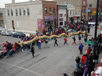 チャイナタウンでは2011年建国4710年の辰年をお祝いして、1月29日の1時からパレードが繰り広げられます。紙でつくられた竜の被り物やフロート、獅子舞などでもりあがります。中国において、正月は、「春節」とよばれ、冬の農閑期で最も盛大なお祭りです。台湾では、大晦日から1週間が祭日となりお休みになります。この期間に家族の下に帰省する人が多く、大晦日には家族でテレビを見ながら年が変わるまでおきています。この日には、ホットポット(火鍋)をみんなで囲んで温まります。朝になると、初詣を済ませた後、周りの親戚の家々を挨拶に回ります。この時に、年長者から子供たちは赤い袋に入れられたお年玉をもらいます。新年の食事は縁起の良い名前のメニューがずらりとテーブルに並びます。大根餅は大根の台湾語の呼び名、菜頭(ツァイタウ)が彩頭(ツァイタウ=幸先のよさ)に、魚団子のスープは団子の丸さが家内円満につながります。今回お話をうかがったハイジさんは、シカゴにいるため親戚周りは出来ないけれども、毎年お正月には台湾にいる家族に電話をかけるそうです。なんだか、日本のお正月とよく似ていますね。