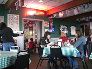 先輩:よし、次のお店はチキンサンドイッチの専門店、Chick-fil-A。アトランタで始まったフランチャイズなんだけど、随所に古き良き南部料理を思わせるファストフード店って感じだね。