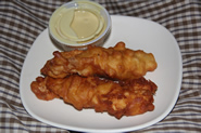 先輩:お、ホントだ、こりゃまさに素揚げだね。どれどれ。おお、イケルじゃん。確かに日本人にはこれは受けるよ。カリッと揚がってるのにとってもジューシーでドライさを全く感じない。